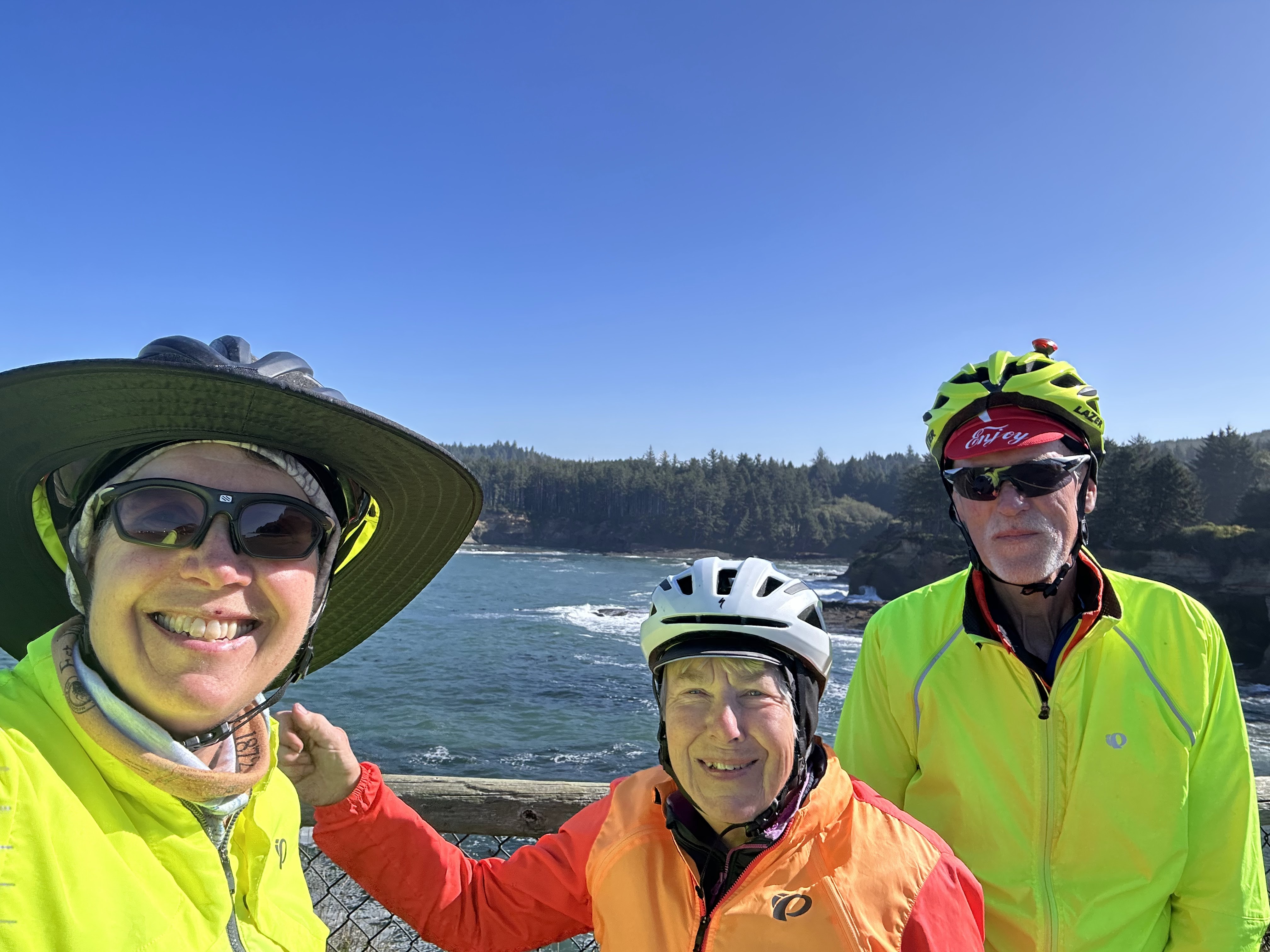 I recently completed my longest bike packing trip to date - 9 days, 250 miles from Olympia WA to Newport OR with Colleen and Matt from Olympia. (I know that many of you in TWBC have done longer trips, but I started later in life, and I'm pleased with this effort.) We started in Olympia and by time we were in Tumwater, we were in heavy rain which lasted for three days. When we crossed the Megler bridge to Astoria, the wind rain was blowing rain sideways. Beyond Astoria, it was mostly clear and sunny. Except for one night in a motel in Ilwaco to dry out and one stay in yurt because of wind and light rain, we camped in hiker-biker camp sites.